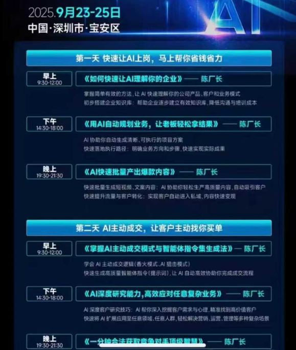 陈厂长9月23-25号AI智能体实战创业营