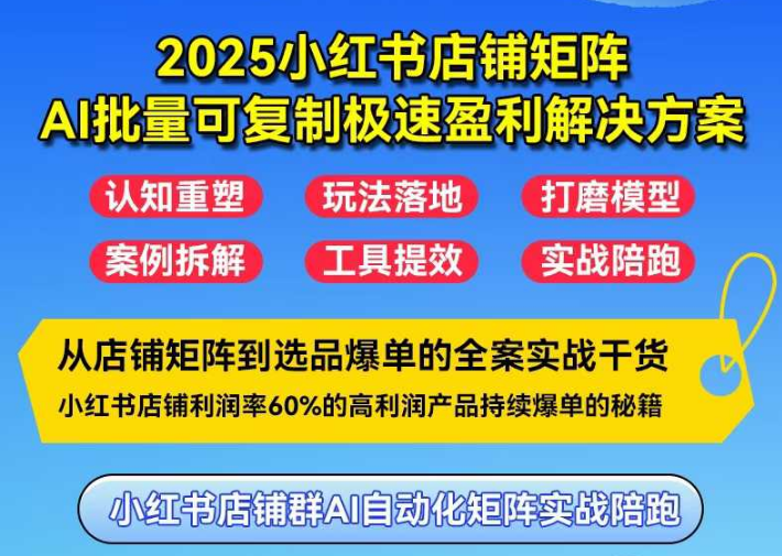 AI批量可复制极速盈利,从店铺矩阵到选品爆单的全案实战干货,小红书店铺利润率60%的高利润产品持续爆单的秘籍
