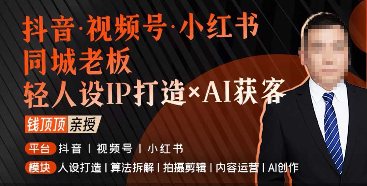 同城老板人设ip打造、算法拆解、拍摄剪辑运营、AI创作等
