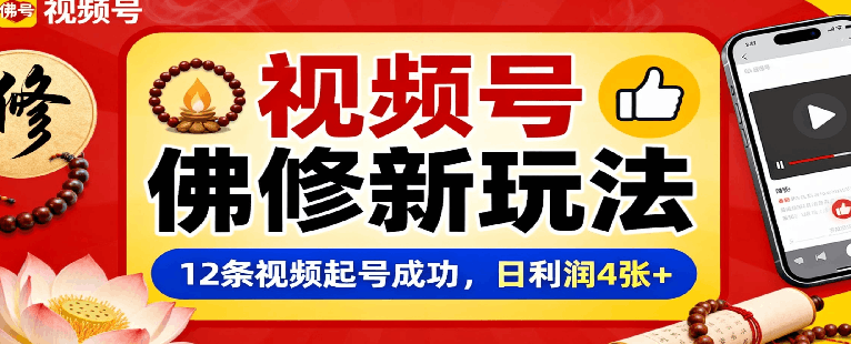 视频号红利项目,针对视频号人群的佛修玩法,操作简单,小白可操作,附带详细教程,轻松日入400+