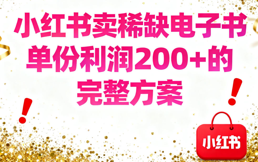 这个项目教你通过小红书平台销售稀缺电子书资源实现盈利。我们会提供全套操作指南:包括电子书资源获取、内容创作模板、引流技巧以及成交话术。利用信息差变现模式,单笔利润稳定在200元以上,无需库存和物流,