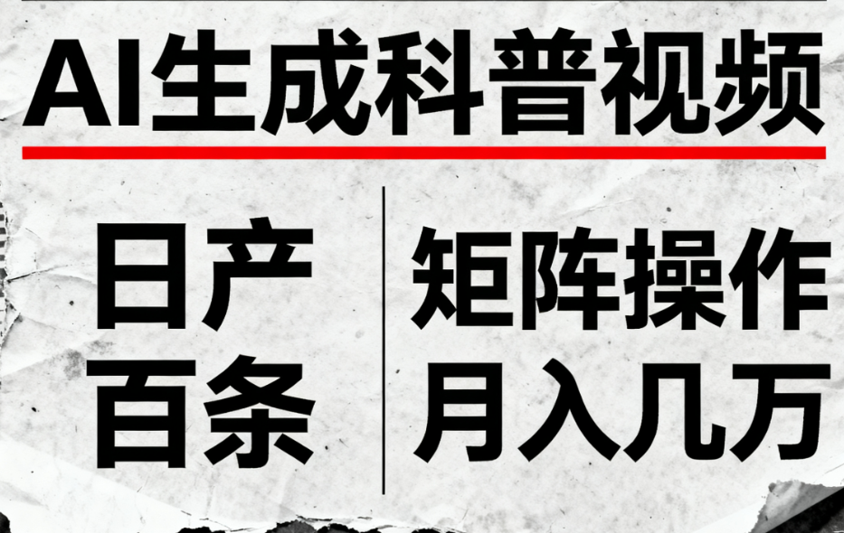 手的AI工具!今天给大家分享的,就是AI一键生成科普视频的赛道玩法,一条知识点视频一分钟就能搞定,你一天想囤够一年的素材都不是问题,就算运营十个垂直赛道科普账号,几天就能备齐全年的内容库,这么香的方