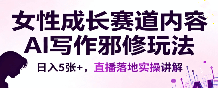 利用【女性成长】赛道内的各种知识博主讲解的关于女性成长的课程,将其中的课程内容扒下来,然后利用AI进行整理,二创,然后形成一篇新的女性成长的内容