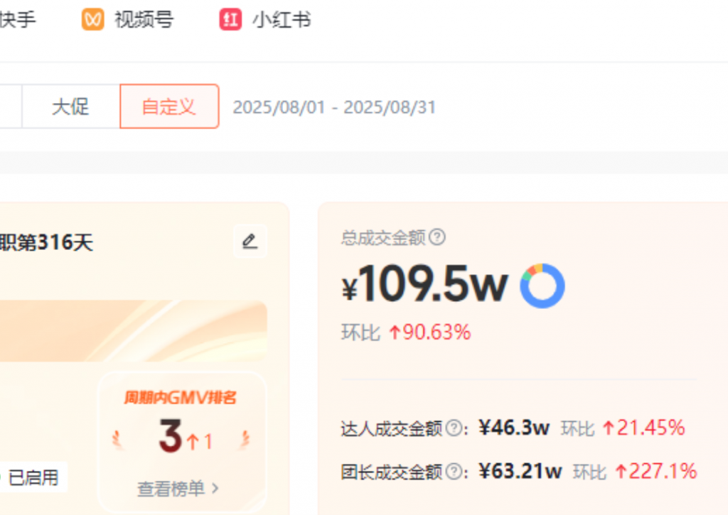 1看达人近30天带货数据GMV