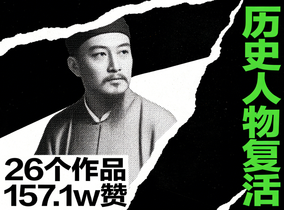 全网AI复活历史人物播放量已经破亿,大多账号一个月涨粉10多w,不论是科普,文化传承,还是娱乐内容,用户对跨时空对话的形式充满好奇与付费意愿。而且技术门槛低,只需要用AI工具就能生成逼真的历史人物和动态