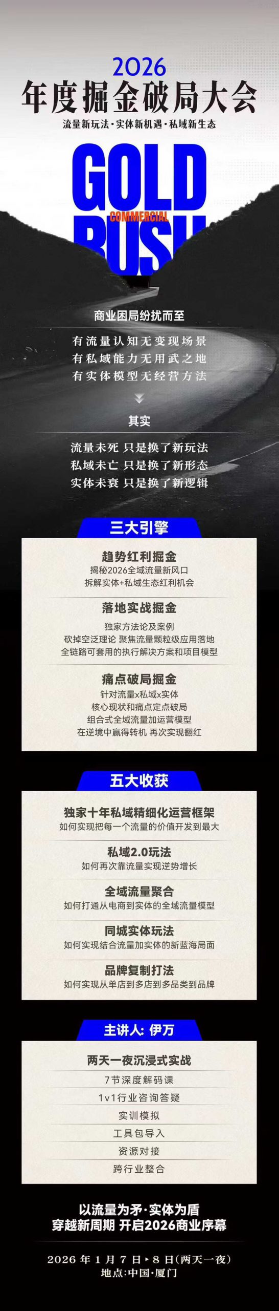 伊万厦门1.7-8线下两天课程全内容,适合流量运营、实体转型各行业。年度重磅课程来了