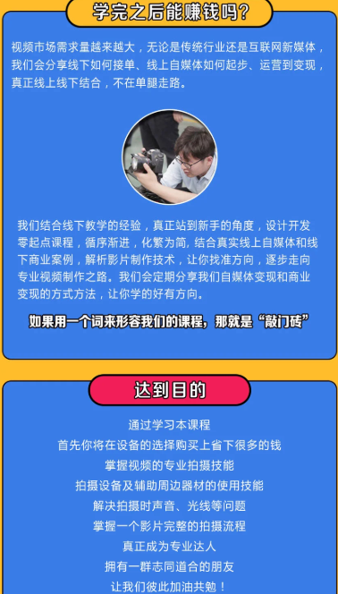 短视频拍摄系统课专为零基础新手打造,从器材使用到实战拍摄,从工作场景到生活记录,全流程系统化教学,拒绝纸上谈兵,教你的每一个技巧都能直接落地,帮你快速从拍摄新手蜕变成能拍会剪的高手