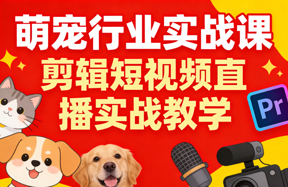 课(定位、竞对分析、四件套打造)、小白剪辑课(关键帧、蒙版、去水印等13节剪映技巧)以及宠物行业深度课(它主义招商、零倒闭率解析、千万投资案例)。全套课程帮助学员从0到1掌握宠物赛道在抖