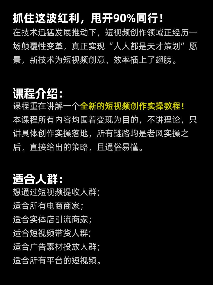 26年最牛的短视频课程,流量在哪里,生意就在哪里!!!!不以增收为目的视频都是要流氓